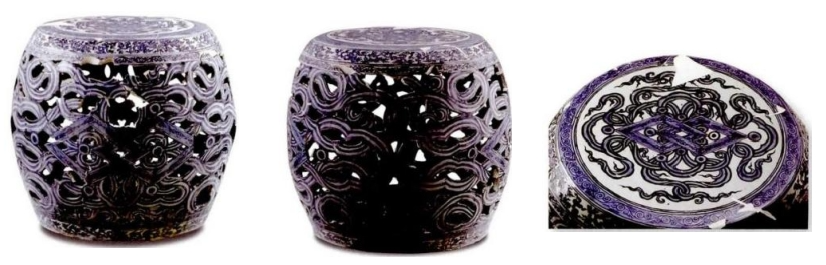 尽管如此,坐墩仍属烧成难度大的品种。万历十二年(1584),右金都御史陈有年巡抚江西,到景德镇了解御器厂的生产情况,发现很多“奇巧难成”的产品,其中就有坐墩。他在《陈恭介公文集》卷二《钦奉圣旨事疏》中写道:“凉墩皆系玲珑,面阔,土泥印成,用刀雕削,拣选完美,描画用釉,内系虚空形势阔大,入窑烧出,具凹塌碎裂,工力已竭,计无可施。”《江西省大志》中也有“檠台、凉墩之类,百不得一”的记录。