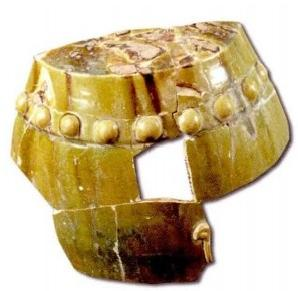 从这两条文献看,宋代已经有了瓷坐墩,而且有瓷坐墩的具体产地——钧窑。另外,考古资料也可证实宋代有生产坐墩的窑场。江西省文物考古研究所分别于2006、2008、2012年对吉州窑遗址进行了考古调查、发掘,出土了一批重要的瓷器和窑具标本,其中就有“绿釉瓷坐墩” 标本(图一一)。张文江等撰写的《吉州窑遗址近几年考古调查发掘的主要收获》将“绿釉瓷坐墩”的时代定为南宋,应该是目前发现最早的瓷坐墩标本。
