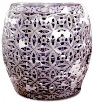 珠山北麓出土的坐墩有青花与五彩两种。青花有同心方胜纹、松竹梅纹和狮球纹三种纹饰,五彩所绘为钱纹。