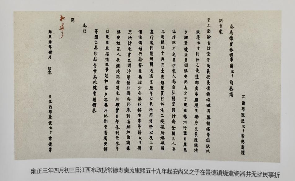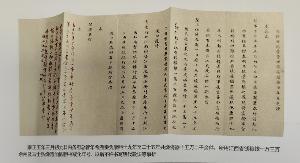 雍正朝虽然只有13年,但御窑厂生产的瓷器品种质量均达到鼎盛时期,督陶官制度已经确定。最为典型的是由内务府官员兼理陶务。虽然是兼理,但说明了御用瓷器的生产管理已由朝廷的行政机关转向皇族事物的管理机关。尤以雍正皇帝朱批奏折史料价值最高。首当其任的是内务府总管年希尧,雍正四年至十三年正三品,管理淮安关务兼管景德镇窑务近九年之久。