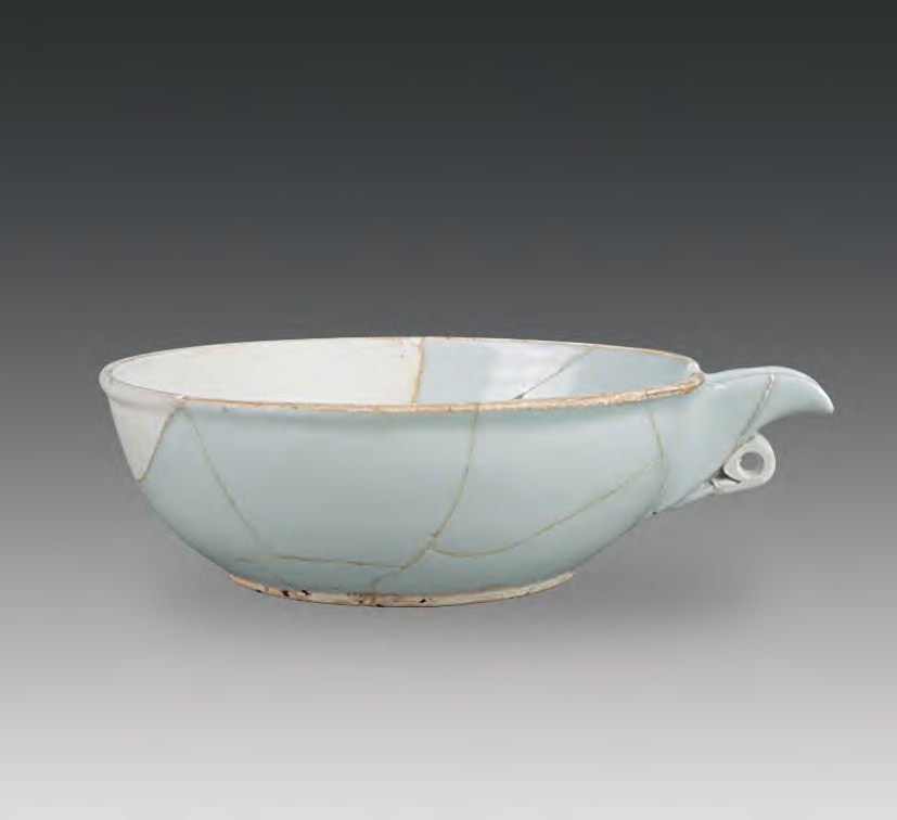 此外,由于匜短流、平底,与唐代用来暖药的素面金铫(图二一)和宋代用来煮茶的三系壶(茶铫)(图二二)类似,有人推测其也作为暖酒的用具。但是,匜口沿与短流相对的一侧既没有便于镶接手柄的接口,芒口四周也没有安装提梁的孔洞。在元代,人们用一个加温无处着手、芒口敞开的器物来暖酒绝非易事。更何况落马桥窑址考古发掘出土的器物中,还有一件小瓷匜口径 5、高 1.6 厘米(T13H2 ∶ 381),只可用手心捧着。因此,匜形器物用来暖酒及以何方式暖酒,还需进一步探讨。