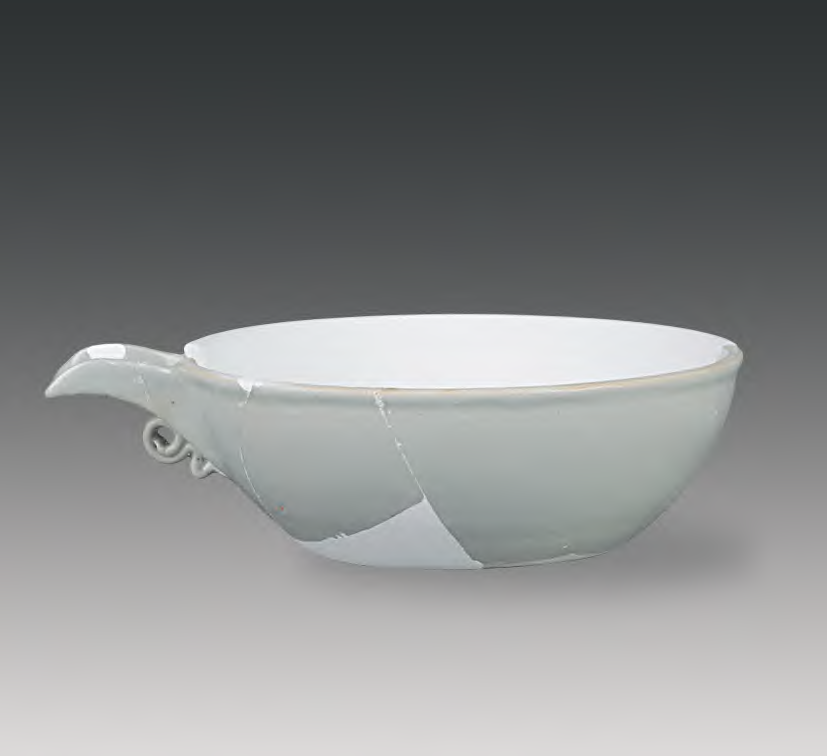 瓷匜镶接部位的稍许降低, 既保留了短流较平的形制, 又方便入窑烧制。因此,落马桥窑址出土的Ⅲ式瓷匜是景德镇制瓷工匠对无锡元墓出土带系银匜形制模仿后的改进产品, 是根据制瓷需要而进行的改革与创新。