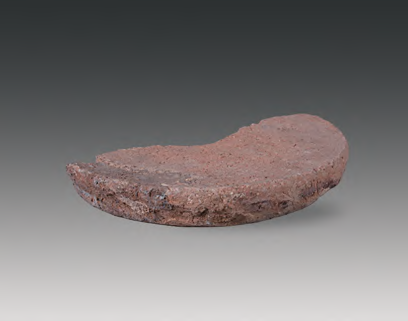 2012年在落马桥窑址进行的发掘中,于元代灰坑(T13H2)出土一件细颗粒耐火土平面垫饼(图二十),直径16.5厘米、厚2.8厘米,按器物泥坯 10%的收缩率,此平面足以放下任何形制大小的瓷匜坯体, 其质地为颗粒较细的耐火土,结构致密,基本能满足瓷匜坯体放在上面覆烧时平滑收缩的要求。但由于耐火土黏度不好,加工又不够精细,多次入窑烧造后,表面剥落露出许多小坑洞,造成局部不光滑。