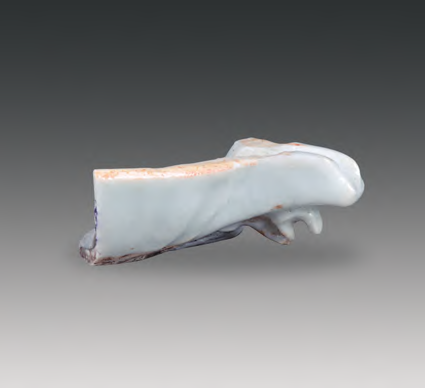 此外,我们知道,金属匜短流下卷云状小系的主要功用是支撑镶接的短流, 增加稳固性。而景德镇瓷匜经过入炉烧制,短流与器身融为一体,从器物结构而言,瓷匜无须这样的支撑。瓷匜短流下单薄的小系,既不能作为吊环随身携带,也不能作为器柄用手去执,无任何功用。但景德镇窑瓷匜短流下面几乎都有一个小系, 且早期小系制作粗糙, 后期小系制作精美。笔者认为,瓷匜短流下的小系最初是对金属匜器形的一种模仿,后来逐渐成为习惯,变成一种装饰,应不是所谓“传统型匜(无系)是日用水器,耳环型匜(有系)是外来酒器”的说法。