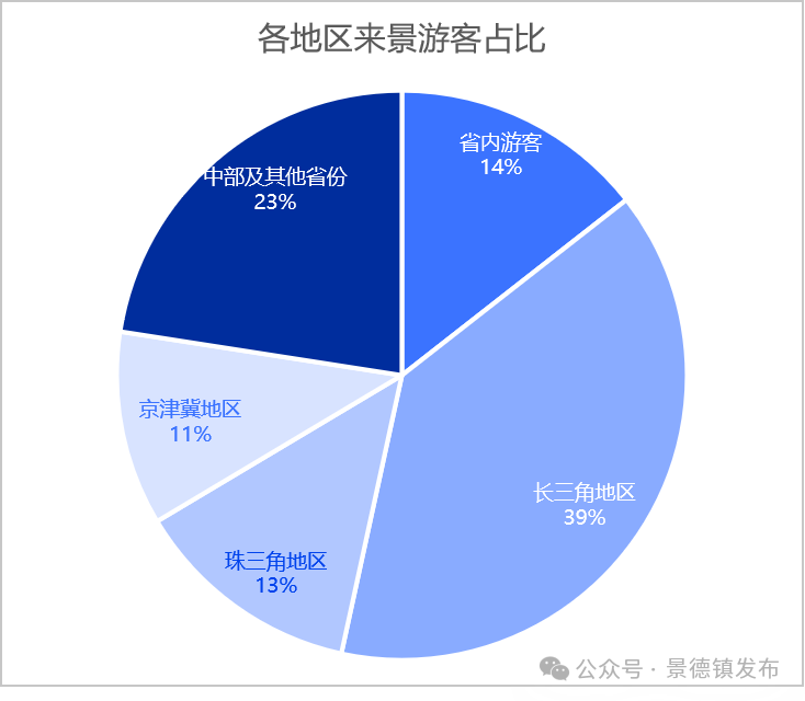 经初步统计,2025年10月1日至8日,景德镇市累计接待游客逾900万人次,同比增长8.75%;实现国内旅游花费超110亿,同比增长7.05%,人均花费1260元。从地域分布来看,省内游客占比14.4%;省外游客占比85.6%,其中长三角贡献45.5%省外客源,珠三角15.2%、京津冀13%,中部地区及其他省份26.3%,已形成层次清晰、梯度互补的三层辐射格局,市场潜力持续释放。