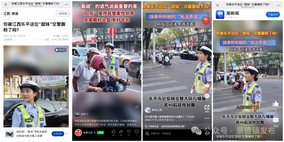 "鸡排哥"正能量话题全网曝光超10亿次,更多游客关注景德镇。乐平交警柔性执法内容阅读量超3.5亿人次,央视《遗迹有奇迹》纪录片观看量超1800万人次,城市美誉度大幅提升。通过官方微信公众号、抖音、微博、视频号等陆续推出国庆中秋假期活动内容图文和视频,内容涵盖假期活动预告、景区实时动态、文旅消费提示、精品线路推荐、“必吃榜”“必玩榜”“必逛榜”“必看榜”、传统文化解读、游客暖心故事等多个方面,新媒体传播有效激发游客到访意愿,推动景德镇从"现象级网红"向"可持续长红"转型升级。