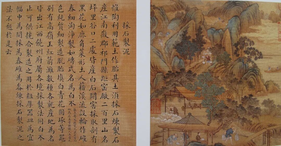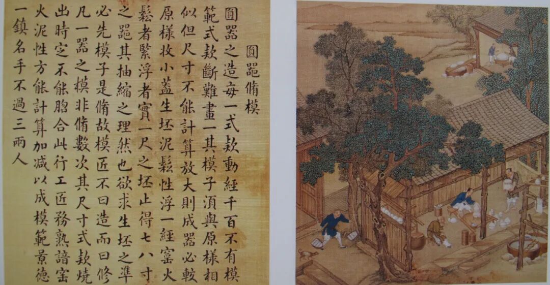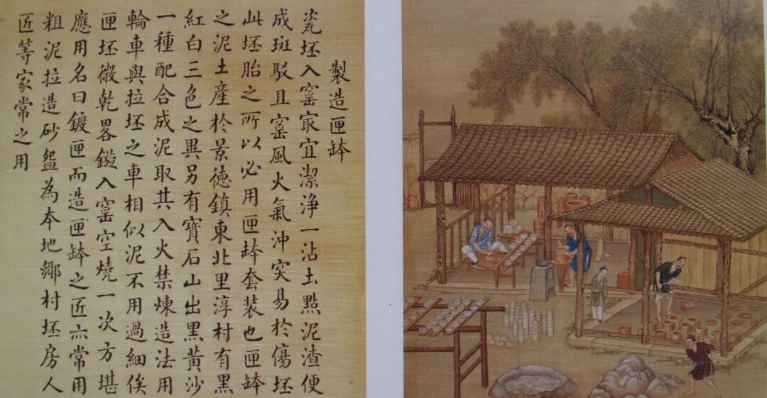《石渠宝笈》记载的《陶冶图》是乾隆皇帝命宫廷画家绘制的,它描绘了景德镇瓷器生产的主要过程,共二十幅,并由唐英配以文字说明,生动地再现了景德镇古代制瓷工艺,是最直观的陶瓷工艺文献,被誉为“古代制瓷工艺流程的最完整纪录”[3]。